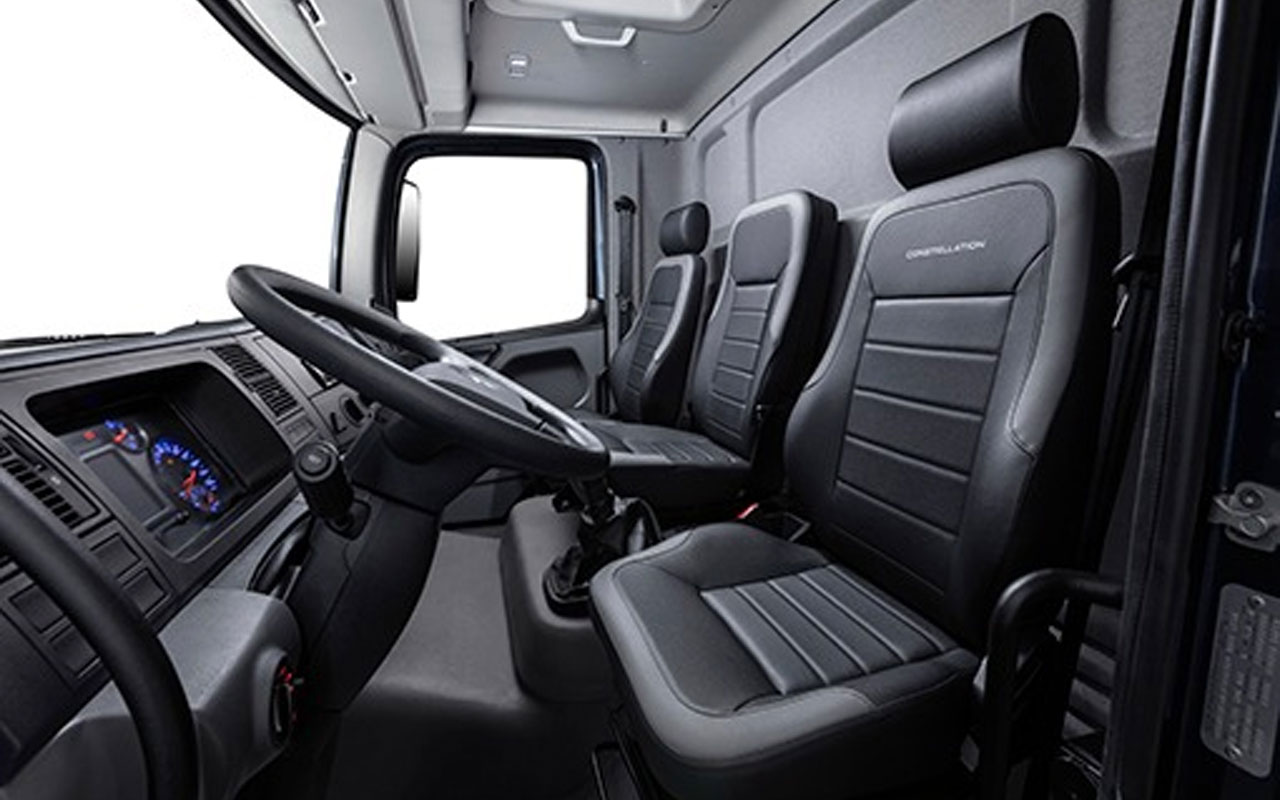 O VW Constellation 14.210 está com o pacote Robust é de série: Novo volante com coluna de direção com regulagem de altura e profundida; bancos com revestimentos em couro sintético sob meida para a limpeza diária da cabine e ar-condicionado para deixar os caminhos mais agradáveis! Um, dois ou três passageiros? Não importa, temos todas as opções de bancos para melhor atendê-lo! E mais, agora com DRL integrado aos faróis, luzes de posição e lanternas traseiras em LED: mais visibilidade e segurança! São diversas facilidades que irão lhe surpreender!