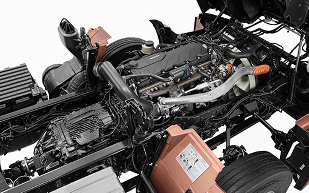 O novo motor D08 de 6 cilindros traz nova potência de 320 cv e 1.200 Nm de torque para garantir melhor performance. Com novo sistema de emissões SCR, atende ao exigido nível de emissões do PROCONVE P8. O VW Constellation 26.320 está com nova transmissão automatizada V-Tronic de série, a mais moderna no mercado, com 12 marchas e oferece todo conforto com a nova alavanca de câmbio no volante.