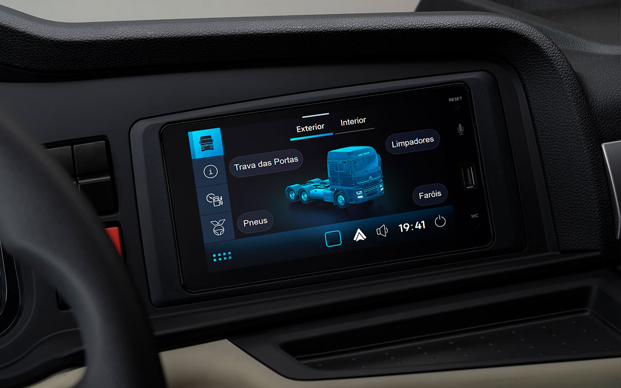 O VW Meteor 28.480 conectado com a plataforma RIO e com uma gama completa de serviços digitais, garante ao gestor da frota acesso a dados do veículo e da operação, em tempo real.