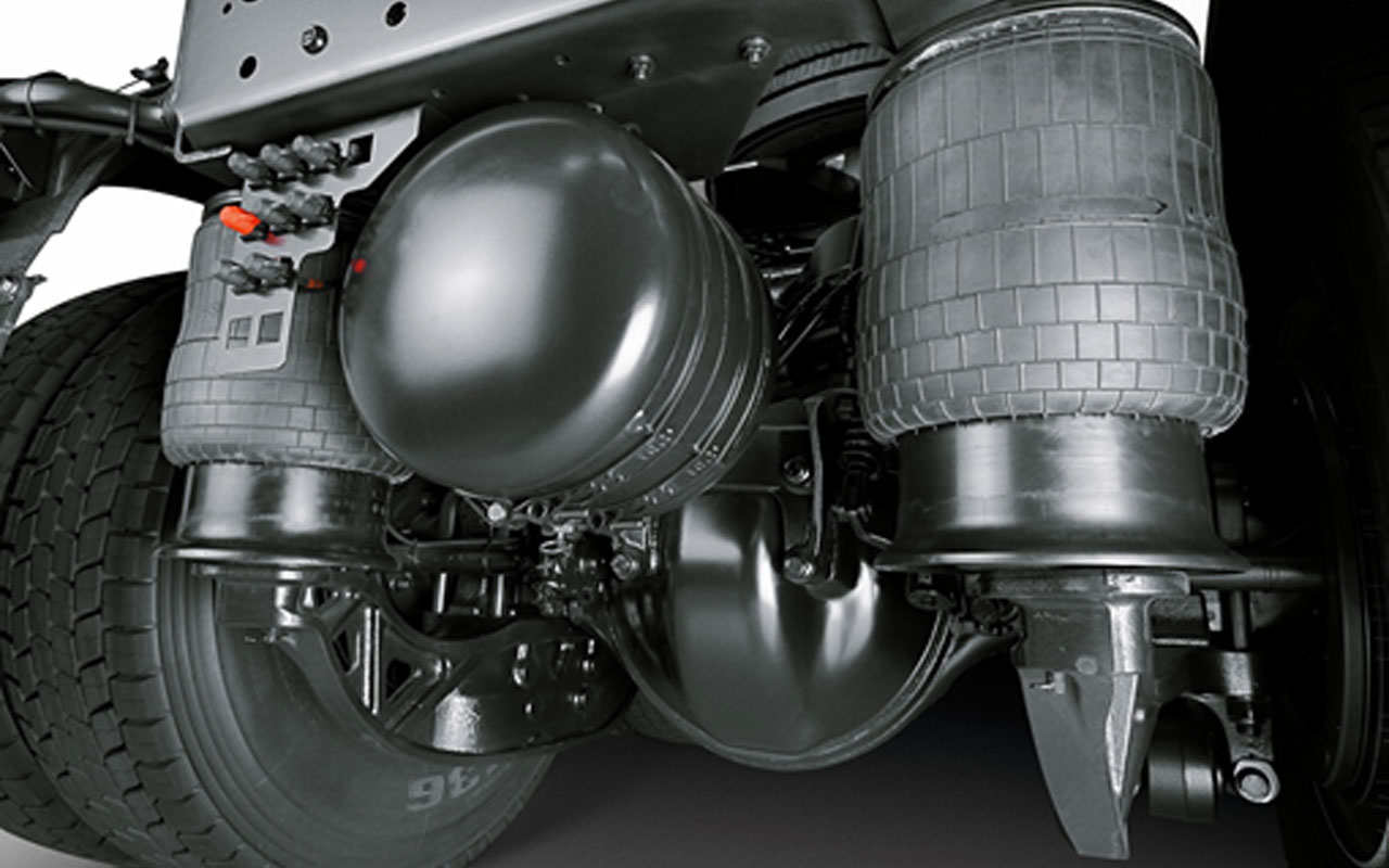 Opção de suspensão pneumática com conceito full air de 4 bolsas pneumáticas por eixo, controle de distribuição de carga e bolsões com sistema snap-on, que garante maior disponibilidade do veículo e maior integridade para a carga durante a operação!