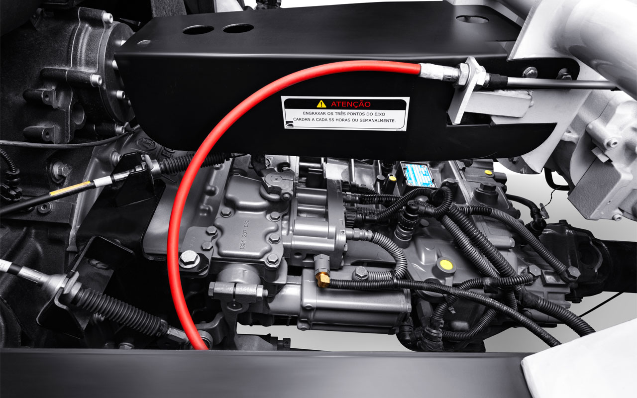 Dispõe das transmissões Manuais ZF de 9 e 16 velocidades e automatizada ZF de 16 velocidades. Ainda possui a transmissão automática Allison disponível para as versões de 275 cv garantindo maior produtividade e segurança operacional.
